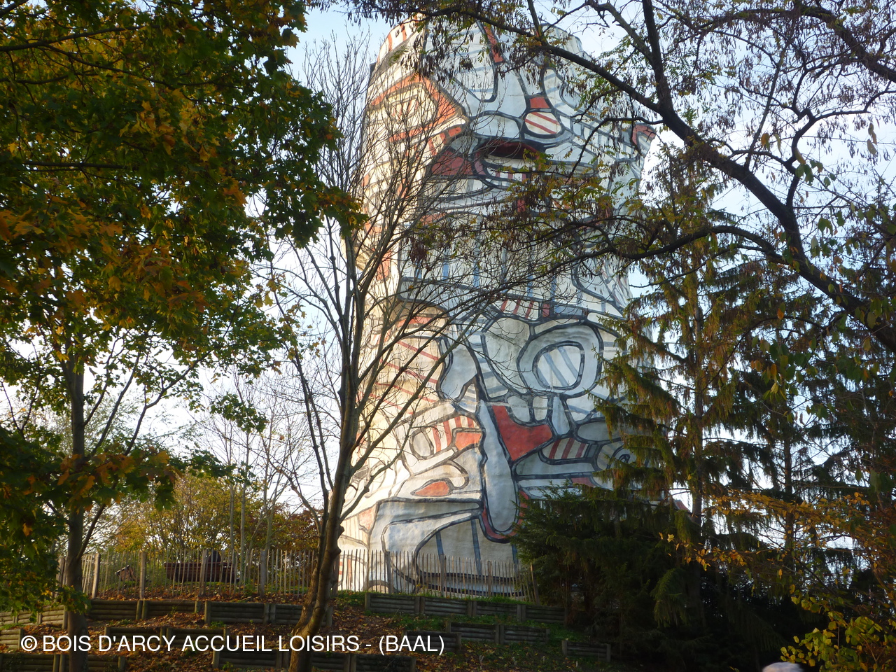 La Tour aux Figures de Jean DUBUFFET, la partie centrale du parc occupée par un poney club et de magnifiques jardins