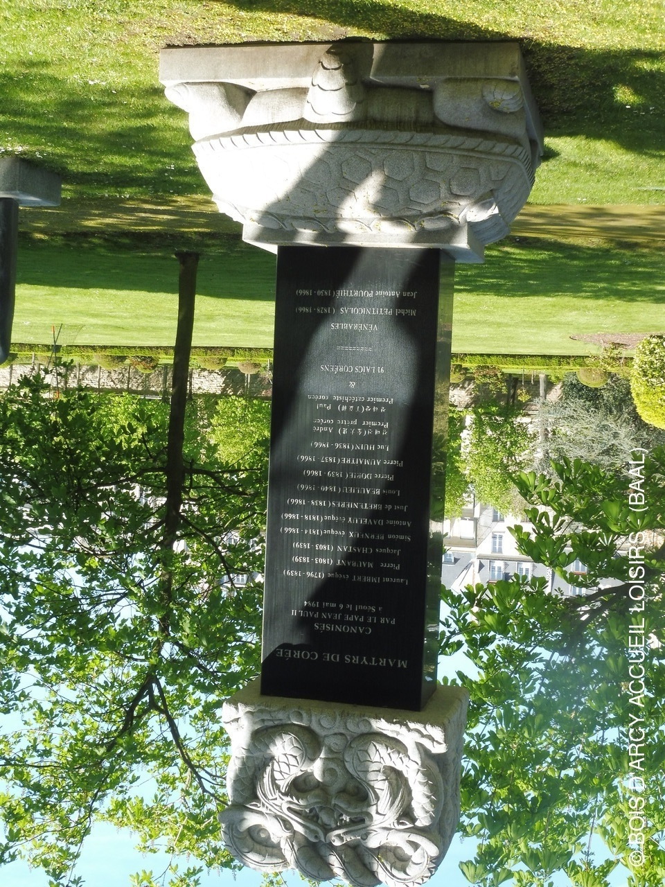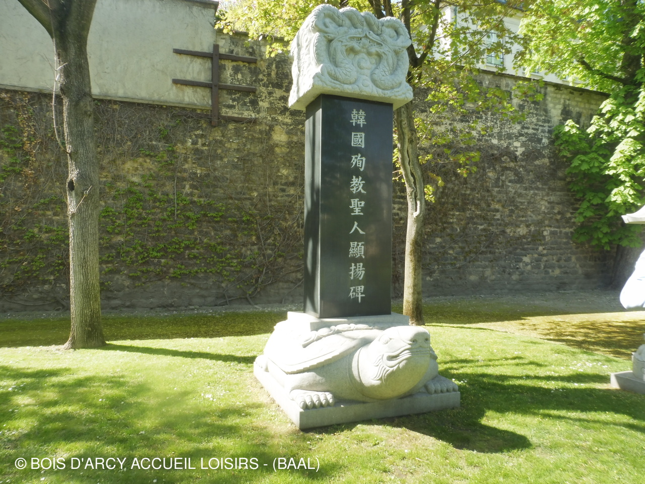 des statues-oratoire-une stèle corénne l'élément principal de ce monument composé d'une tortue symbolisant la terre et la longévité,de la stèle avec les noms des martyrs et d'un chapeau avec deux dragons figurant le ciel,