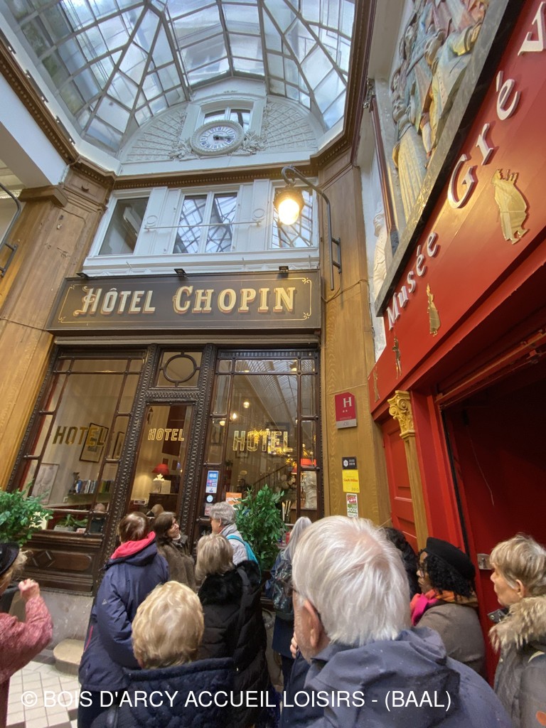 Passage Verdeau, avec ses petits restaurants, son hôtel Chopin très particulier, (à proximité